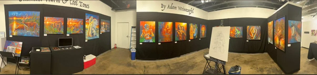 As an artist I explore so many themes that when coming up with my show idea I struggled for months until I decided to display a verity of themes all in the same style and color tones. Warm and cool tones are at the heart of who I am as an artist right now